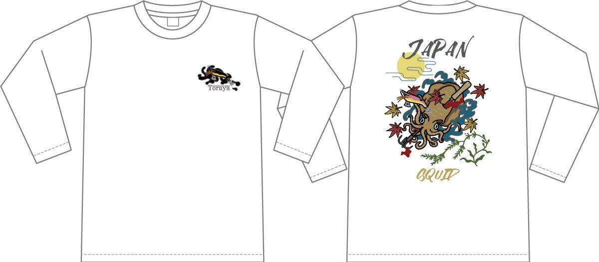 スカジャンをイメージしたアオリイカのデザインがプリントされた長袖Tシャツです。